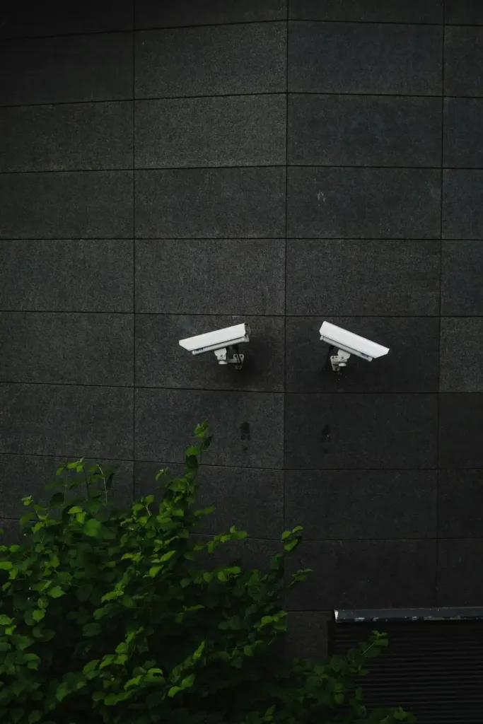 Cámaras visibles y avisos que previenen intrusiones en accesos y zonas sensibles.